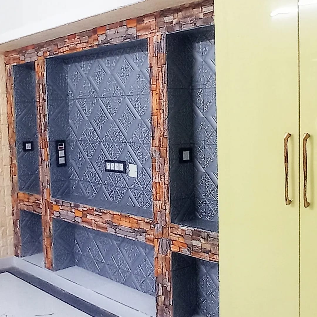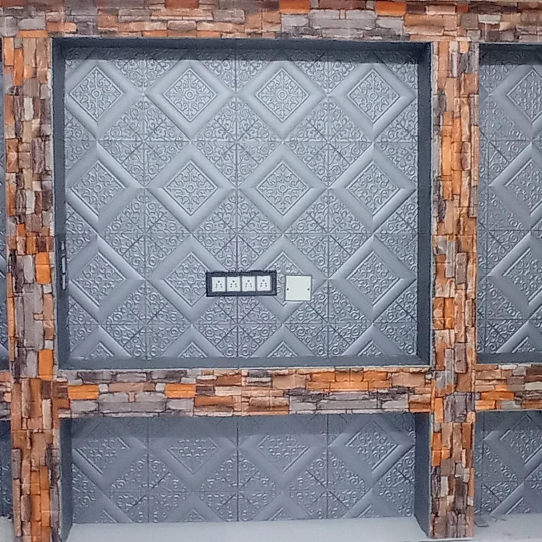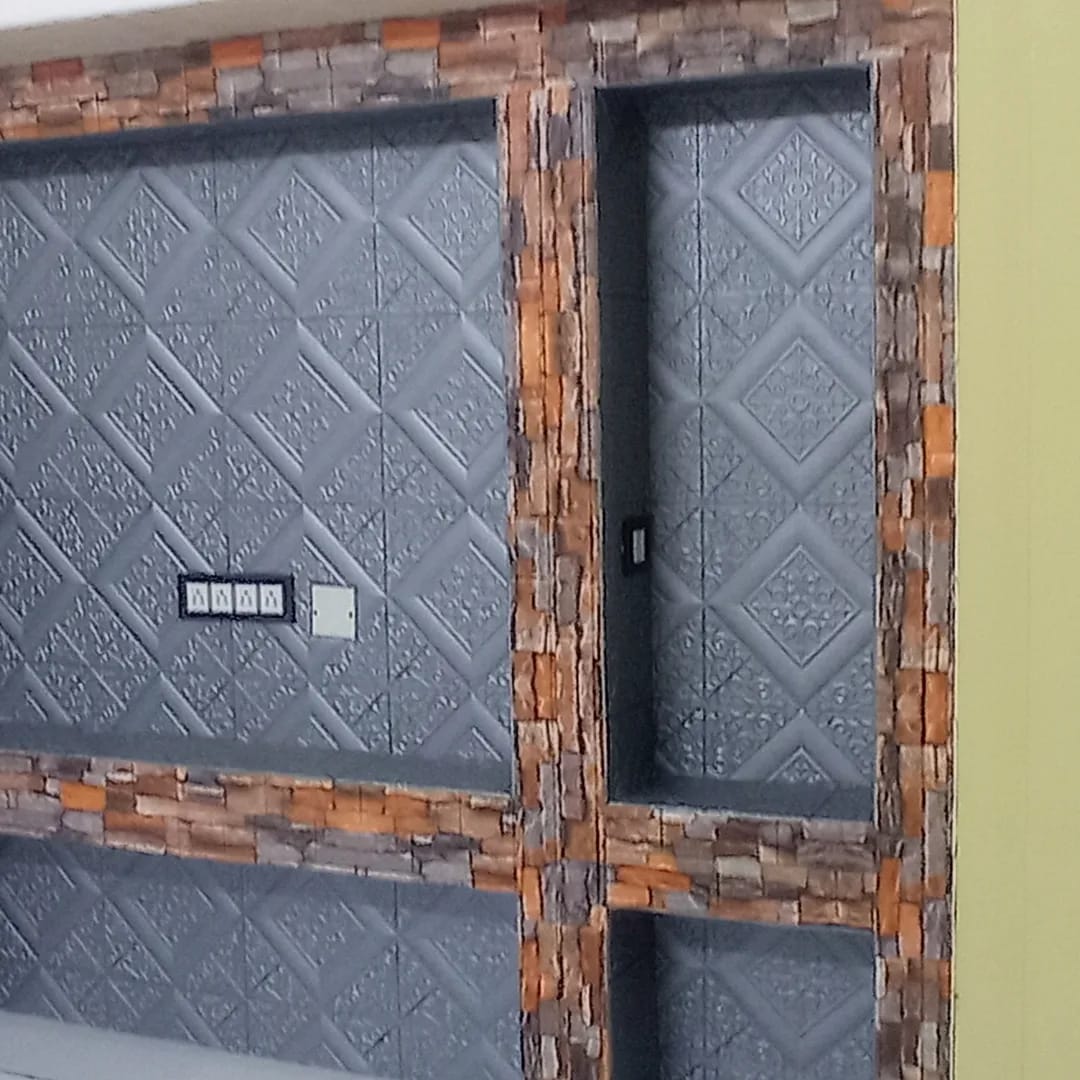 PVC WALLPAPER - BLACK MARBLE WITH , 3D CUSHION BRICK - MARBLE BLACK AND WILD SLICE - METALLIC BROWN
